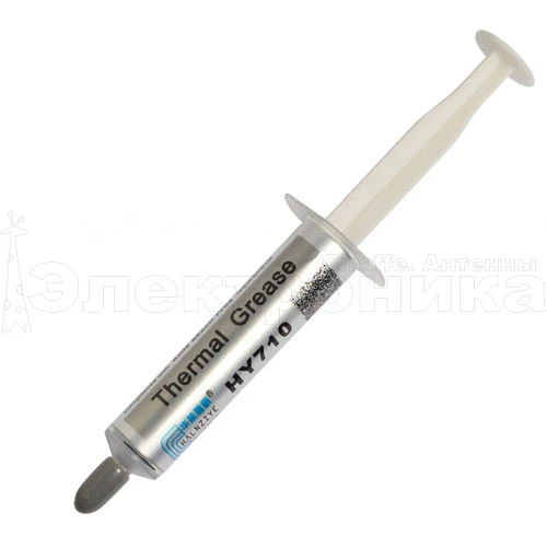 Термопаста универсальная силиконовая - помогает рассеять тепло. цвет: серебро теплопроводность: 3.17 W/m-K тепловое сопротивление: 0.067 С-in2/W рабочая температура: -30 до 240 С объём шприца: 15г