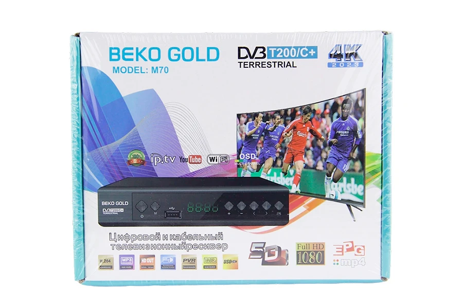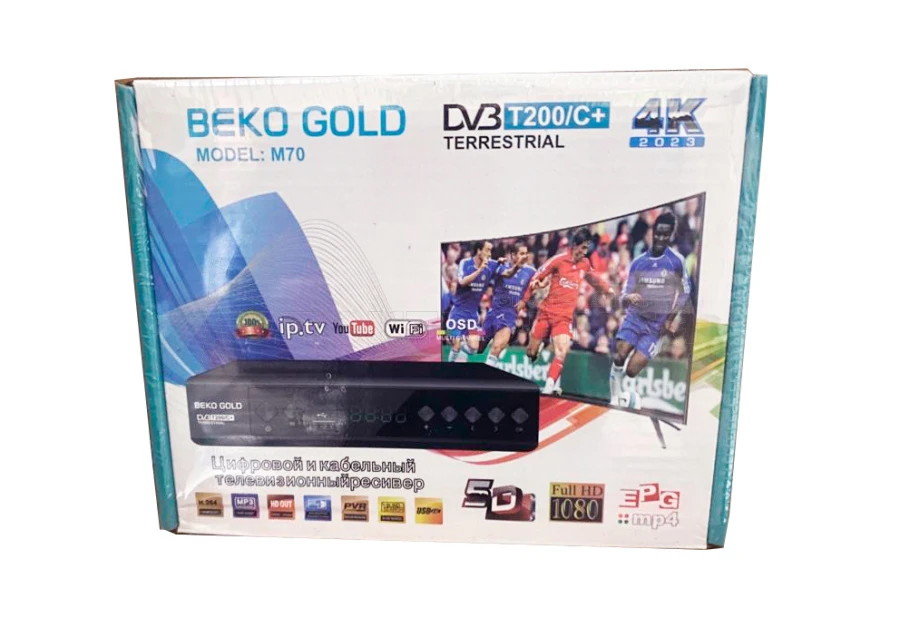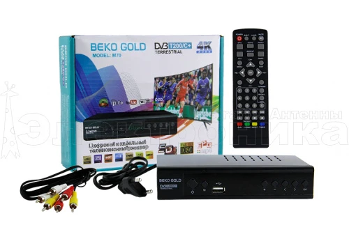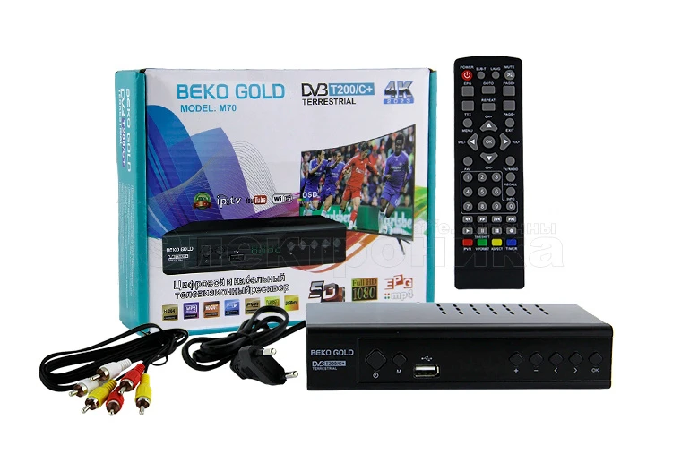 HD BEKO Gold M70 - эфирная цифровая приставка с двумя тюнерами, Wi-Fi, USB и HDMI (576р/720р/1080i/1080p). Формат экрана 16:9, 4:3. Меню на русском. Автоматический и ручной поиск каналов. HD медиаплеер. Низкое энергопотребление. Управление на корпусе и пульте. Корпус - металл, дисплей, шнуры, инструкция.