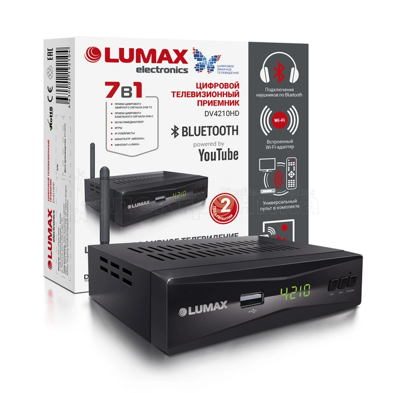 Разъемы - Антенный вход, антенный выход, USB 2.0, HDMI, 3 RCA а/в выход