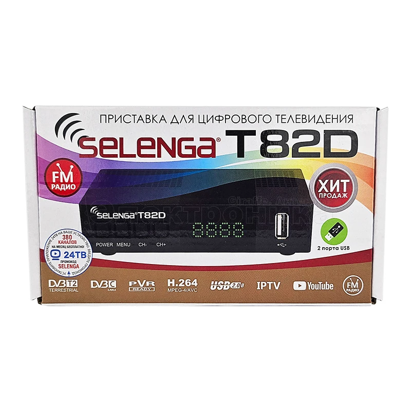 Комплектация: приставка, пульт ДУ, кабель 3,5 Jack -3RCA, батарейки ААА, блок сетевого питания, руководство пользователя