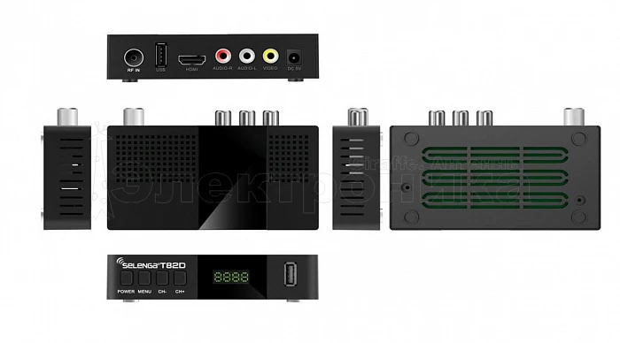 Разъемы для подключений: ANT IN, HDMI, 3RCA, 2ХUSB