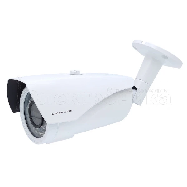 Орбита OT-VNA04 AHD видеокамера - это внешняя аналоговая видеокамера высокой четкости с изменяемым фокусным расстоянием (2,8-12мм) в металлическом корпусе белого цвета, с ночной ИК-подсветкой до 20 метров. Видеокамера совместима практически со всеми гибридными видеорегистраторами. Сама камера имеет разрешение до 2 Мега пикселей, или 1920 на 1080, форматом сжатия видео H.264, углом обзора около 80 градусов, работает на чипсете XM330/F37, что позволяет передавать информацию без задержек и зависаний, встроенный вариофокал позволит подобрать более удобный угол зрения камеры, приблизить, или удалить объект. Для регулировки фокусного расстояния на корпусе устройства в нижней его части, имеются два встроенных шестигранных винта, ключ для регулировки которых имеется в комплекте. Тип камеры - «на ножке» даёт возможность установить камеру как на стену, так и на потолок. Полная длина корпуса камеры с креплением - 26см, само крепление 10,5см. Корпус камеры имеет форму усеченного конуса, где лицевая часть плавно сужается к задней части, диаметрами оснований с 8 до 6см соответственно. По всей длине корпуса камеры дополнительно имеется трапециевидной формы металлический козырёк, который крепится в верхней части по середине корпуса фиксирующим винтом. В центре на лицевой стороне расположен объектив камеры, вокруг объектива под стеклом, в два ряда, расположены 42 диода ИК подсветки, а сразу под объективом датчик включения подсветки. Ножка камеры для крепления имеет три отверстия для саморезов, которые идут в комплекте вместе с дюбель-гвоздями. Камера имеет 2 внешних разъёма, которые расположены на конце 32см кабеля белого цвета, один из которых – для подключения питания 12V, другой под информационный вход разъемом ВТС. В комплекте также имеется инструкция по установке и настройке ПО на русском языке. Для обеспечения контроля и безопасности камеру можно использовать в любых погодных условиях, при любой освещенности. мкп